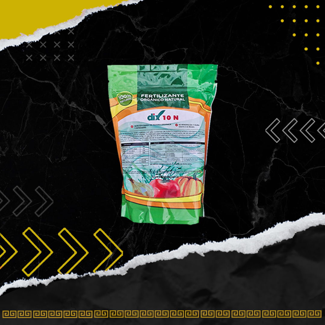 DIX 10 N es un fertilizante 100% orgánico con alto contenido de materia orgánica activa y nitrógeno. Es indicado para fortalecer el crecimiento de las plantas en sus estadios iniciales o para rejuvenecerlas. El uso de DIX 10 N está aprobado para producciones orgánicas. Está libre de patógenos, certificado desde el punto de vista sanitario. Excelentes resultados en producciones hortícolas, frutales, florales y céspedes.