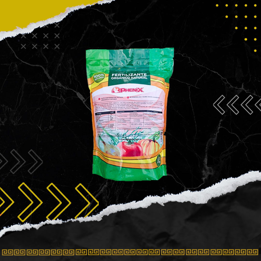 PHENIX es un fertilizante 100% orgánico con alto contenido de materia orgánica activa y macro-nutrientes. Su alto contenido de potasio lo hace indicado para lograr mayor sanidad, resistencia al frío y aumentar la calidad de las flores y frutos. El uso de PHENIX está aprobado para producciones orgánicas. Está libre de patógenos, certificado desde el punto de vista sanitario. Excelentes resultados en producciones hortícolas, frutales, florales y céspedes